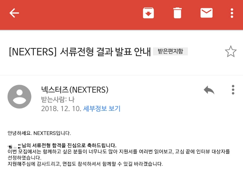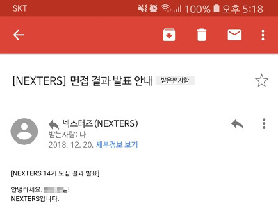 발표 당일, 면접 결과 발표 메일이 도착했다.