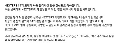 학부 때부터 팔로우 하고 있던 Nexters의 신입 회원 공지를 보았다. 그 당시에는 대외 활동이고 뭐고 빨리 취업을 해야 한다는 압박 + 온갖 geek하고 천재같은 사람들 사이에 나 같은 왕초보가 합격할리 없다는 쭈굴쭈굴한 마인드 때문에 지원하지 못했었다. 하지만 이번엔 달랐다. 1년 동안 회사 생활을 하면서 개발에 무척이나 목말라있던 터였다. 공지를 보자마자 고민없이 지원했다.