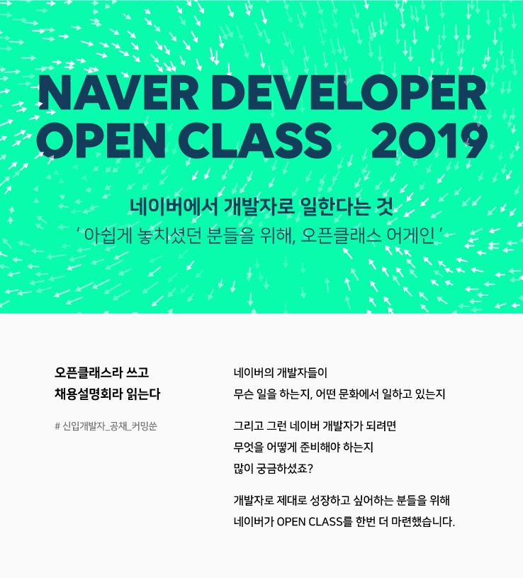 NAVER에서 신입 공채를 앞두고 진행한 오픈클래스에 다녀왔습니다. 원래 8월 초였는데 수요가 많았는지 추가 신청을 받았고, 다행히 추첨에 선정되어 다녀올 수 있었습니다.