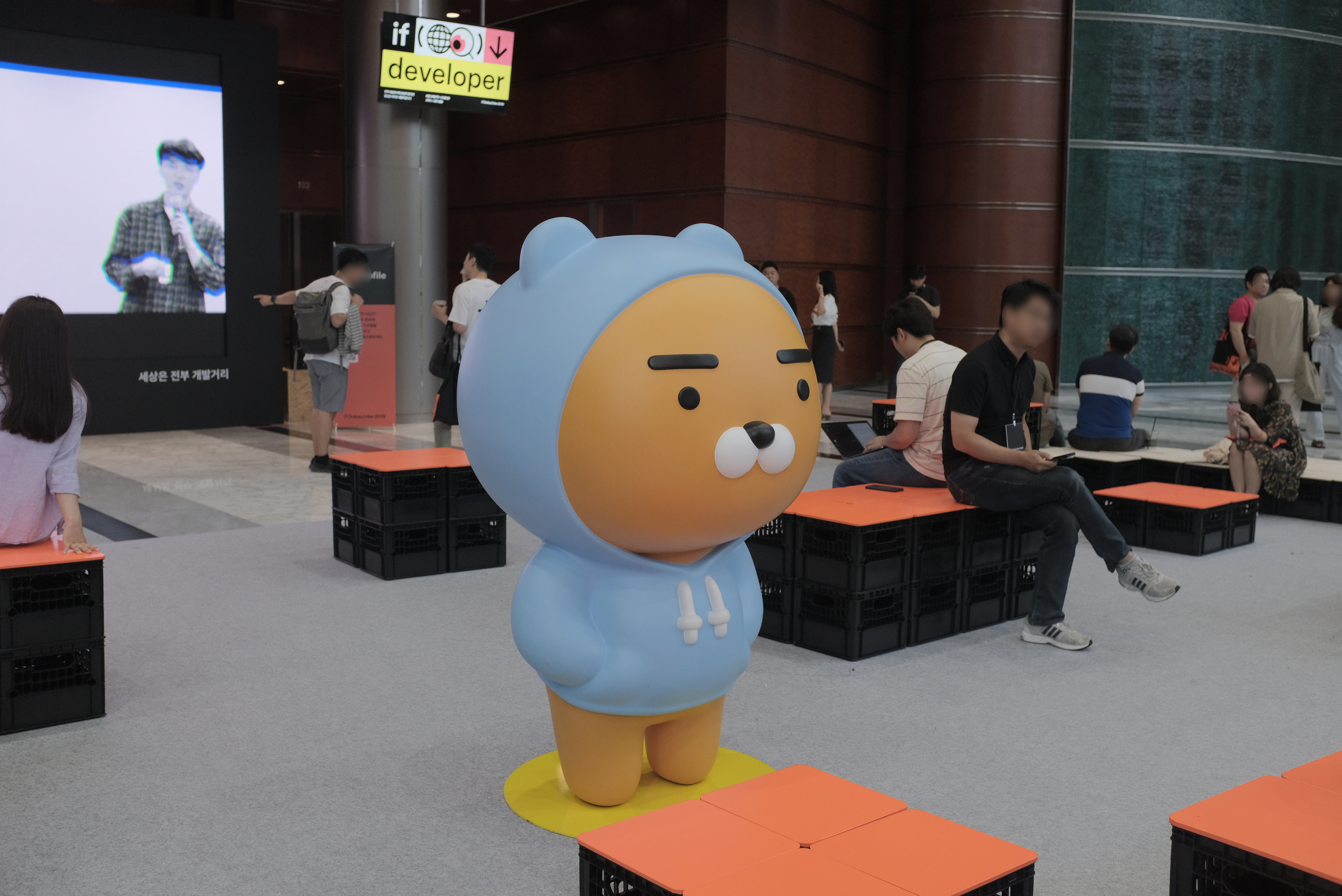 행사장 입구에는 라이언과 함께 기념샷을 찍을 수 있는 공간이 마련되어 있었어요.