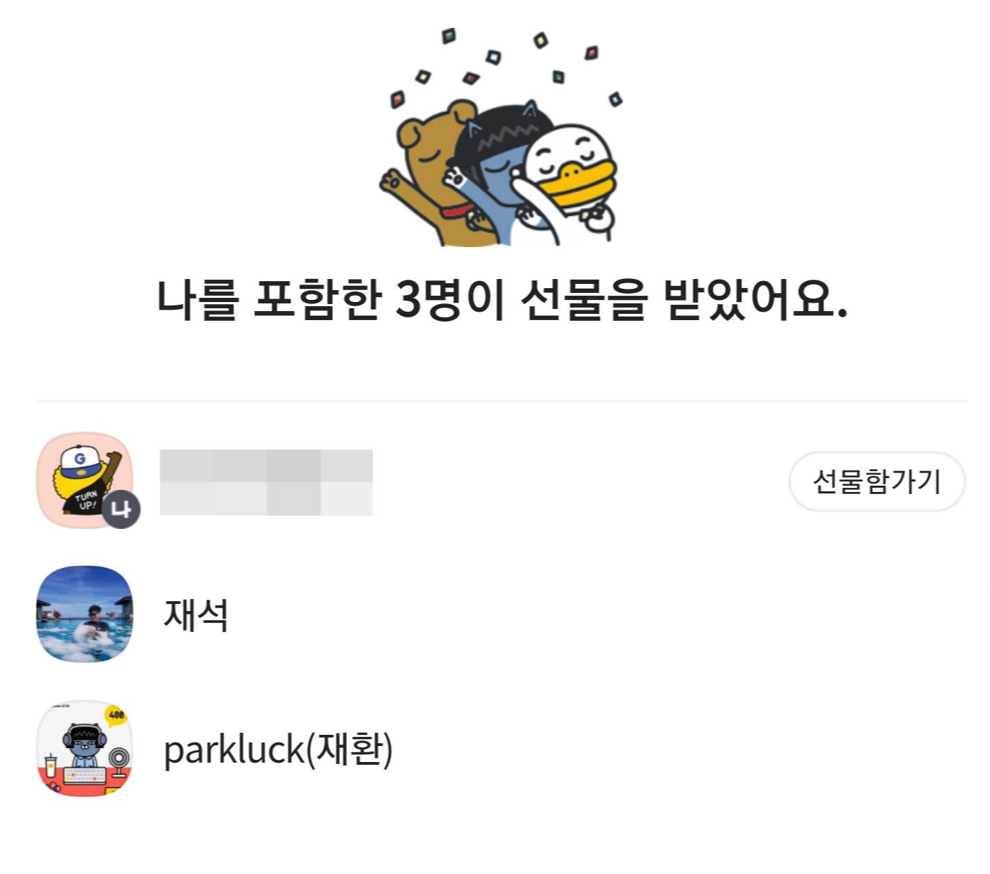 소개가 끝난 뒤에는 이벤트 추첨이 있었습니다. 여러분, 오픈 카톡방에서도 선물하기 기능이 되는 걸 알고 계셨나요?? 선물을 랜덤으로 던져놓으면 참가자가 받을 수 있는 기능이 있더라고요. 저도 덕분에 교촌 치킨 한 마리를 받을 수 있었습니다! 야호!!