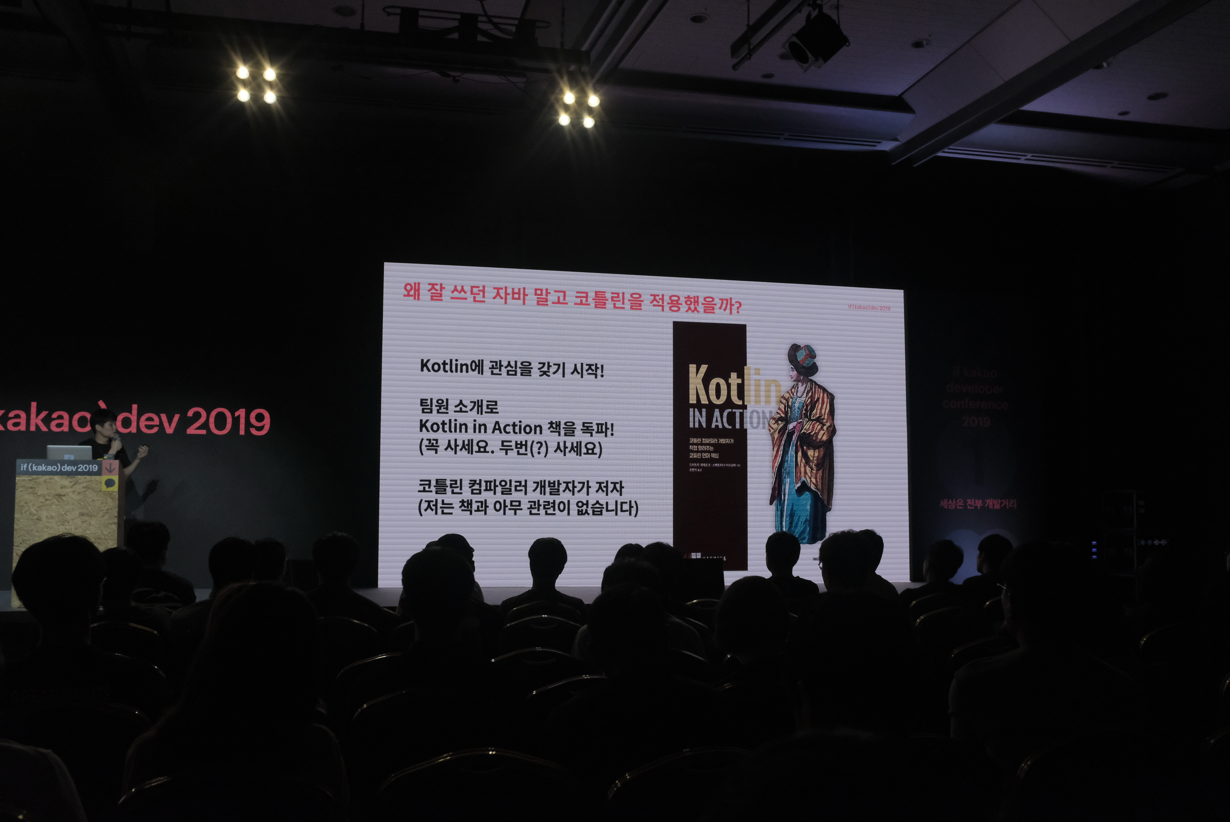 강현식님은 카카오페이에서 일하시면서 코틀린만 있는 프로젝트와 자바+코틀린인 프로젝트를 경험해오셨다고 해요.