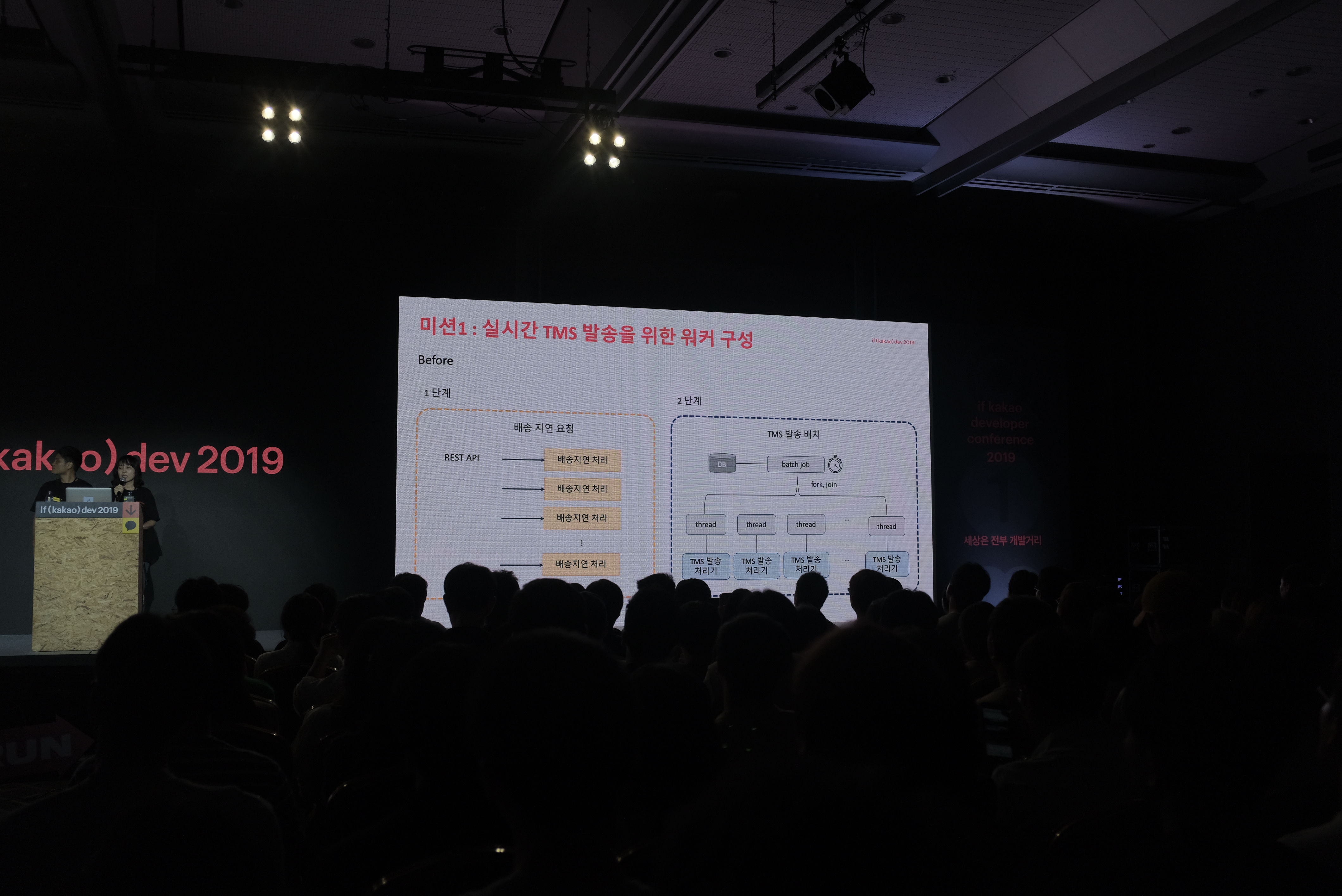 처리에 필요한 API 등등 추가적인 정보가 많은 상황에서 실시간으로 처리하는 비즈니스 로직을 추가하면, 성능에 이슈가 생길 수 있었겠죠? 병렬 처리를 하긴 했지만 실시간으로 처리하기는 힘들었고, 단일 머신에서 수행되기 때문에 한계가 존재했다고 합니다.